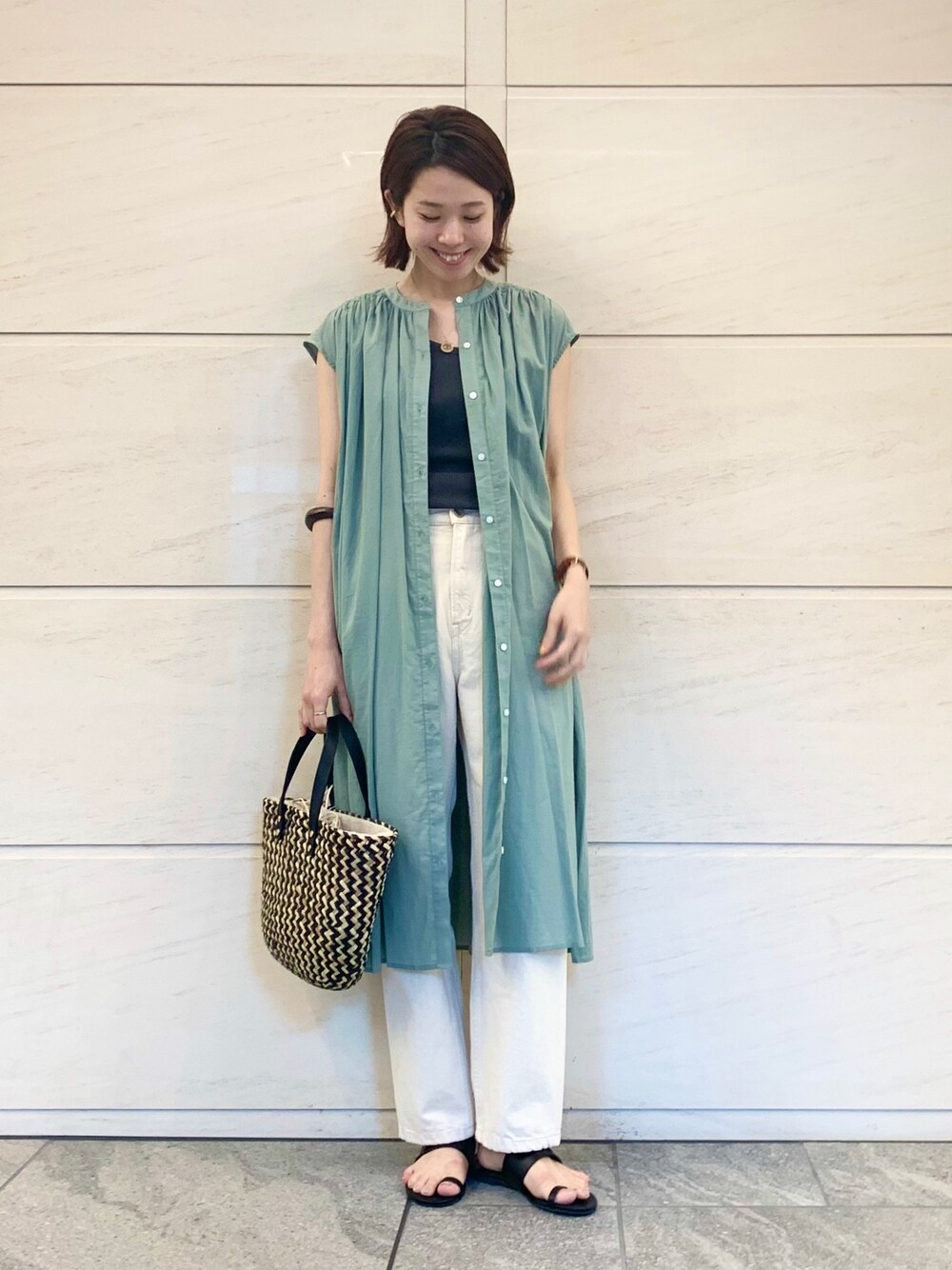 くすみミントxホワイトの爽やかコーデです!