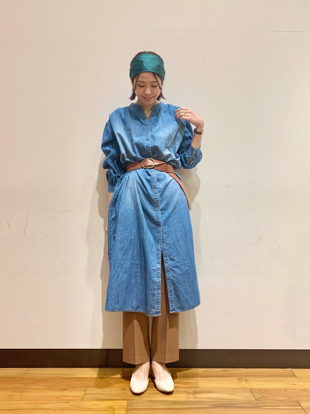 デニムワンピースで春意識! シンプルなのでブラウジングすると 着こなしに差がでます◎