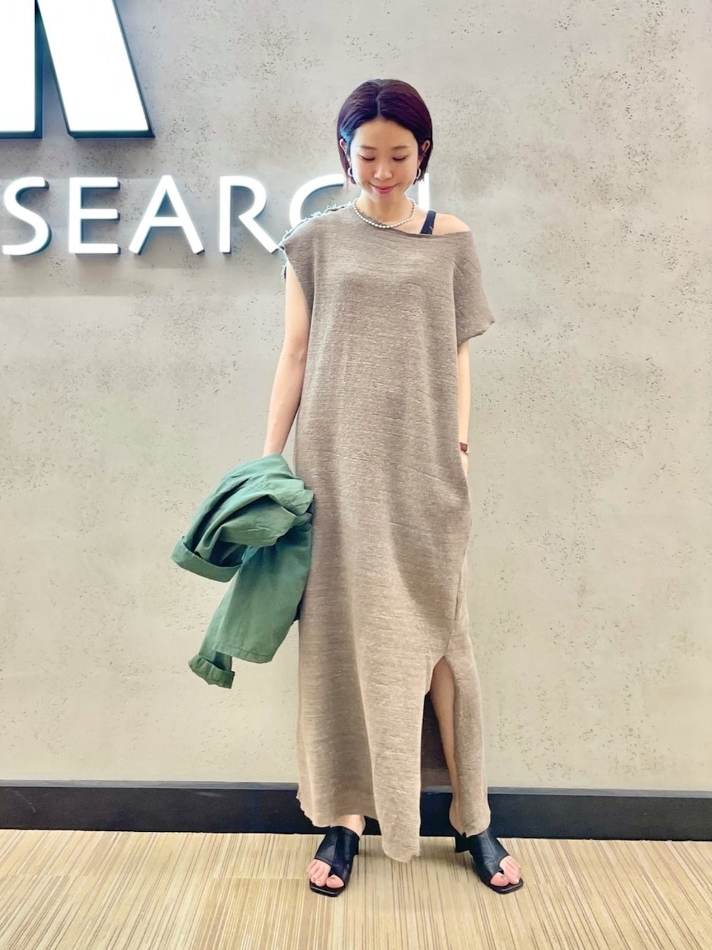 岡本(URBAN RESEARCH なんばCITY)のワンピース「<R JUBILEE>スリットロングワンピース Ψ」を使ったコーディネート