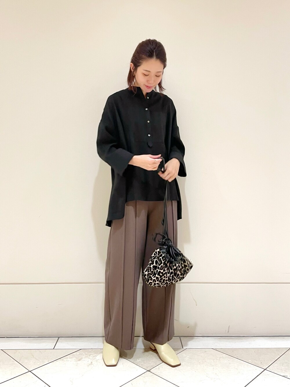 色味から秋を先取り。 パンツは36でウエストも丈感もちょうど良いです◎ インスタではプライベートコーデも載せてるので、 良ければ検索してみてください〜!☺︎ 🦩Instagram:ai_okmt14
