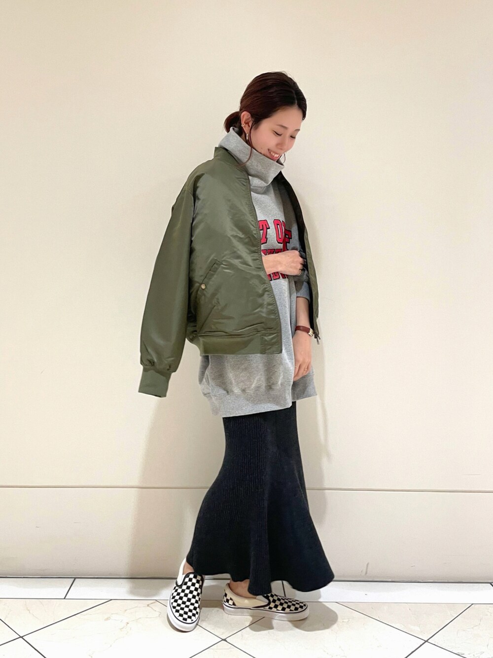 秋アウターは今年はMA-1が気になります! カジュアルコーデにはスカート合わせで ボーイッシュ感を払拭! インスタではプライベートコーデも載せてるので、 良ければ検索してみてください〜!☺︎ 🦩Instagram:ai_okmt14