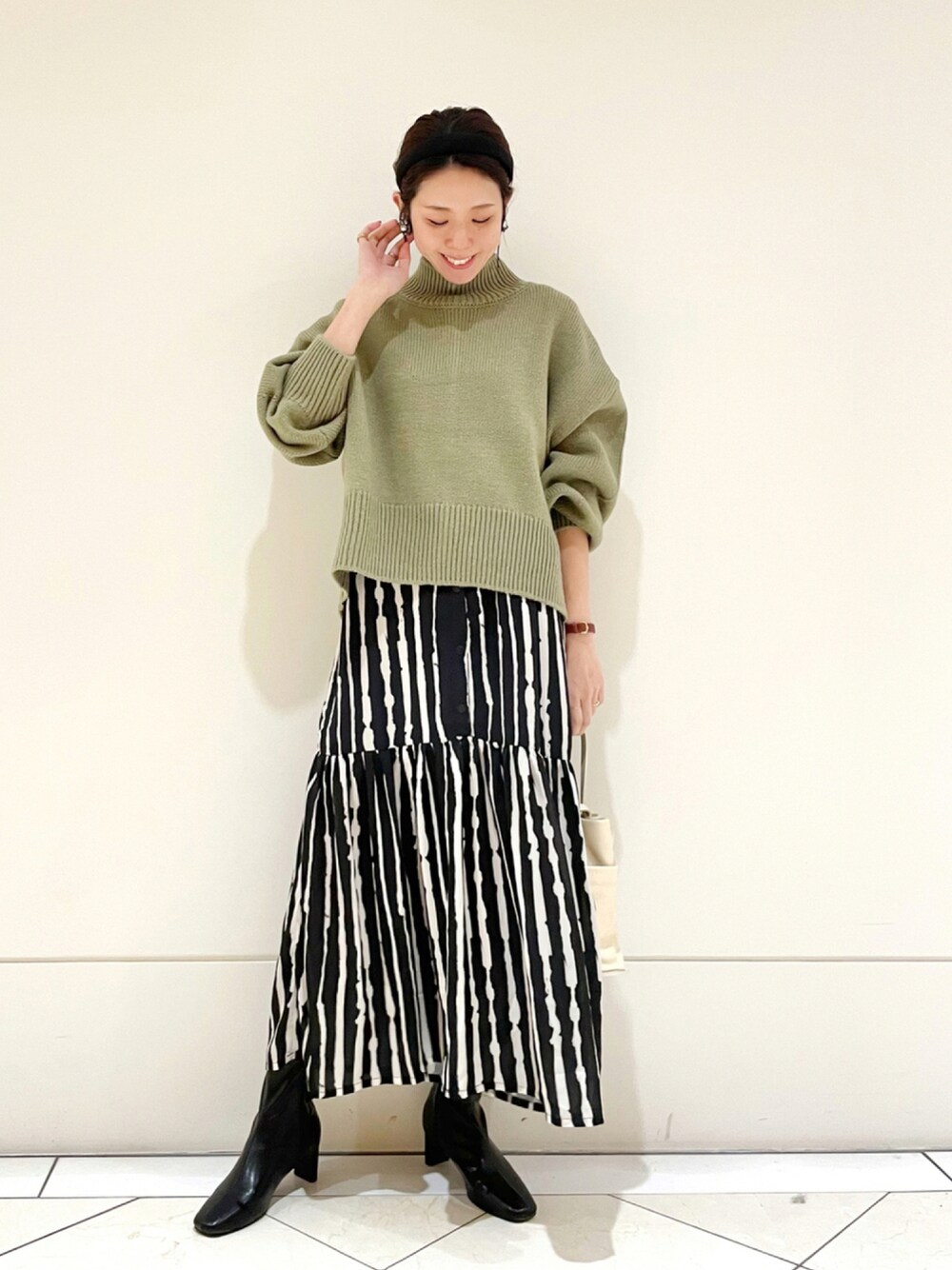 春夏に引き続き、 ピスタチオカラーが気になります! ざっくりニットはワンピースに重ねて 女子コーデを意識しました〜!