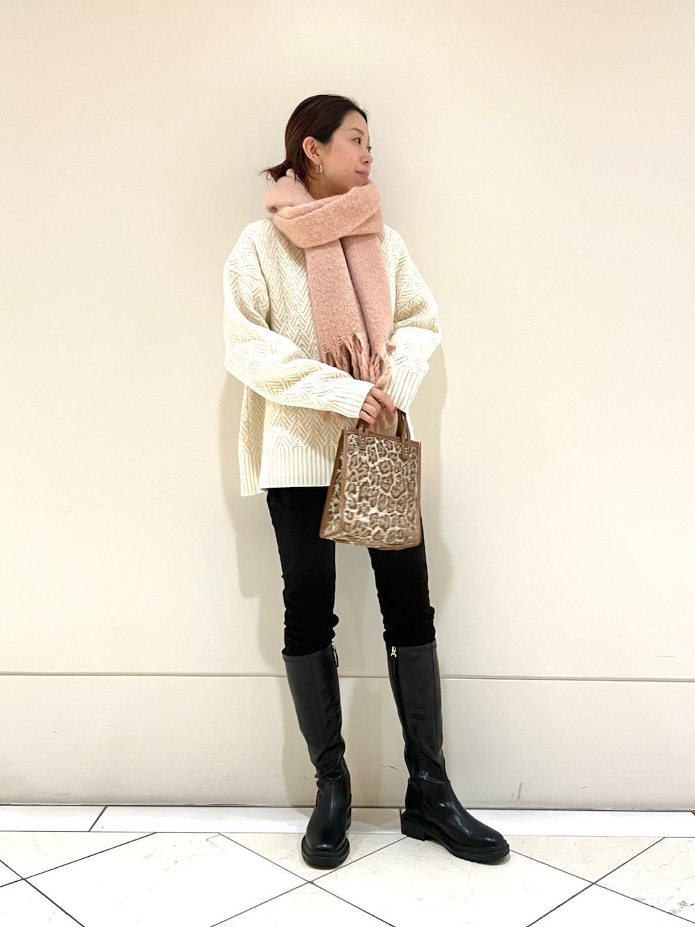 トレンドのロングブーツは、 細身のパンツにゆったりニットのバランスで 合わせると、スタイルアップも叶います◎ インスタではプライベートコーデも載せてるので、 良ければ検索してみてください〜!☺︎ 🦩Instagram:ai_okmt14