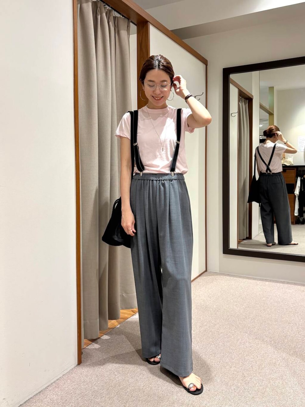 【167cmコメント】 ・Tシャツ 薄手でサラッとした質感なので これからの暑い季節にピッタリです。 インナーは白を着ると透け感は気にならなかったです。 伸びる素材なので、着脱もラクでした! ・パンツ サラッとしていてシワにもなりにくそうで ケアが楽なパンツです! ウエストのゴムもキツくないので、 履き心地も良いです。 私の身長だと、サイズは38がちょうどいいです。 何か気になることがあれば下記へ お気軽にお問合せください😊 岡本インスタ @ai_okmt14 URなんばCITY店 050-2017-9044