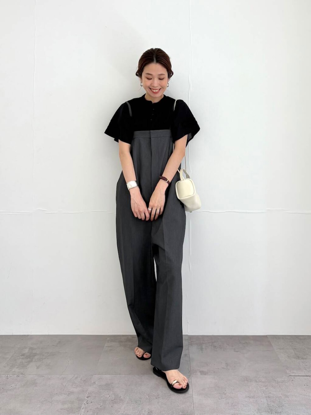 【167cmコメント】 ・ブラウス 二の腕ともしっかり隠れつつ、 薄手なので、すごく涼しいです! 柔らかい素材なので サロペットのインナーに着ても ゴワゴワしなかったですよ! ・サロペット フリーサイズです。 後ろにアジャスターもあり、 私の身長でも丈が短くならずに着れます! 身幅はゆとりがありますが、 Iラインですとんと、落ち感があるため 細く見えますよ! 生地は分厚すぎず、 通年着れそうです。 何か気になることがあれば下記へ お気軽にお問合せください😊 岡本インスタ @ai_okmt14 URなんばCITY店 050-2017-9044