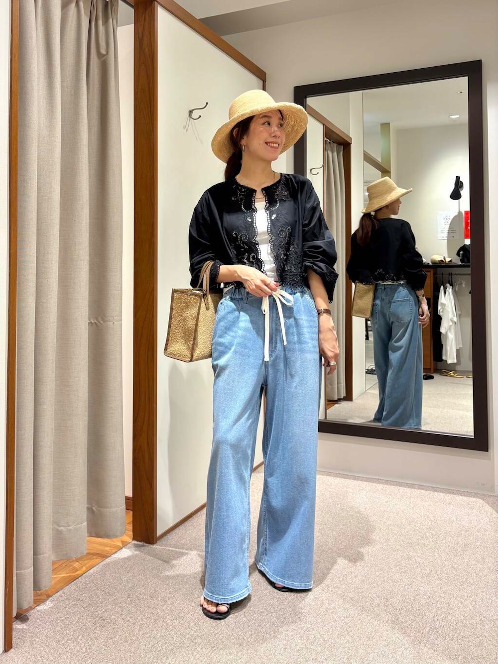 【167cmコメント】 ・ブラウス シャツのような素材ですが、 やわらかく、シワは気になりにくそうです! 薄手ですが、透け感はなく ちょっとした羽織としても重宝しますよ! ・デニム とにかく生地が柔らかくてラクです! 股上も深いワイドパンツなので、 足長効果も◎ 生地の重さもないですよ! 何か気になることがあれば下記へ お気軽にお問合せください😊 岡本インスタ @ai_okmt14 URなんばCITY店 050-2017-9044