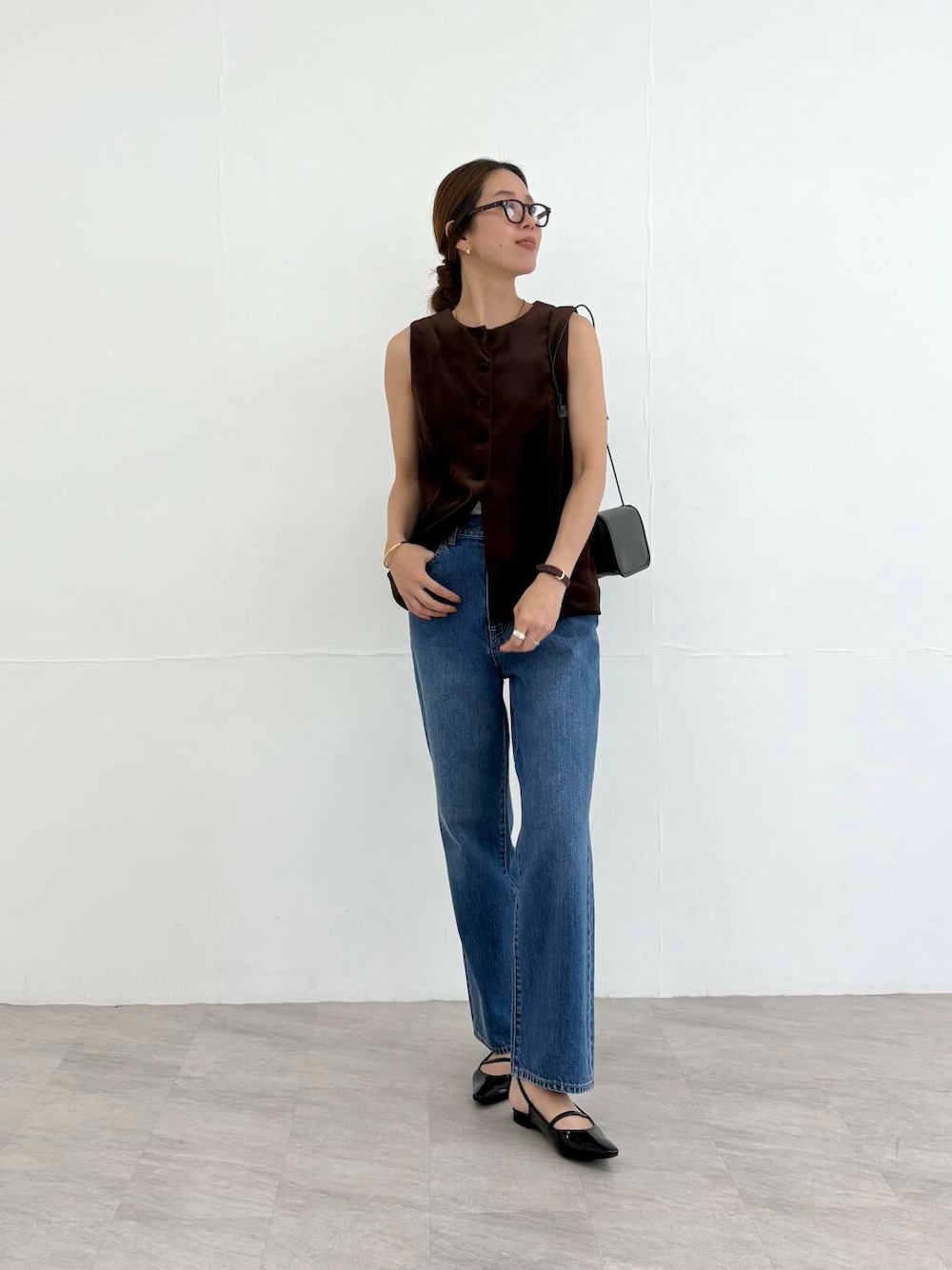 【167cmコメント】 ・トップス これから入荷する予定のベロアのジレになります。 ・デニム 38のサイズで着丈、サイズともにちょうど良かったです◯ 生地はしっかりしていて お尻周りなどはピタッとしますが その分、変に余ったりしないので 後ろから見た時のシルエットがすごくキレイです! ・シューズ 24.5cmで、幅広の足です。 普段は38でもいけますが、 こちらはバッグストラップをつけるとややキツかったので 靴下でも合わせることを見越して 39にしましま! 何か気になることがあれば下記へ お気軽にお問合せください😊 岡本インスタ @ai_okmt14 URなんばCITY店 050-2017-9044