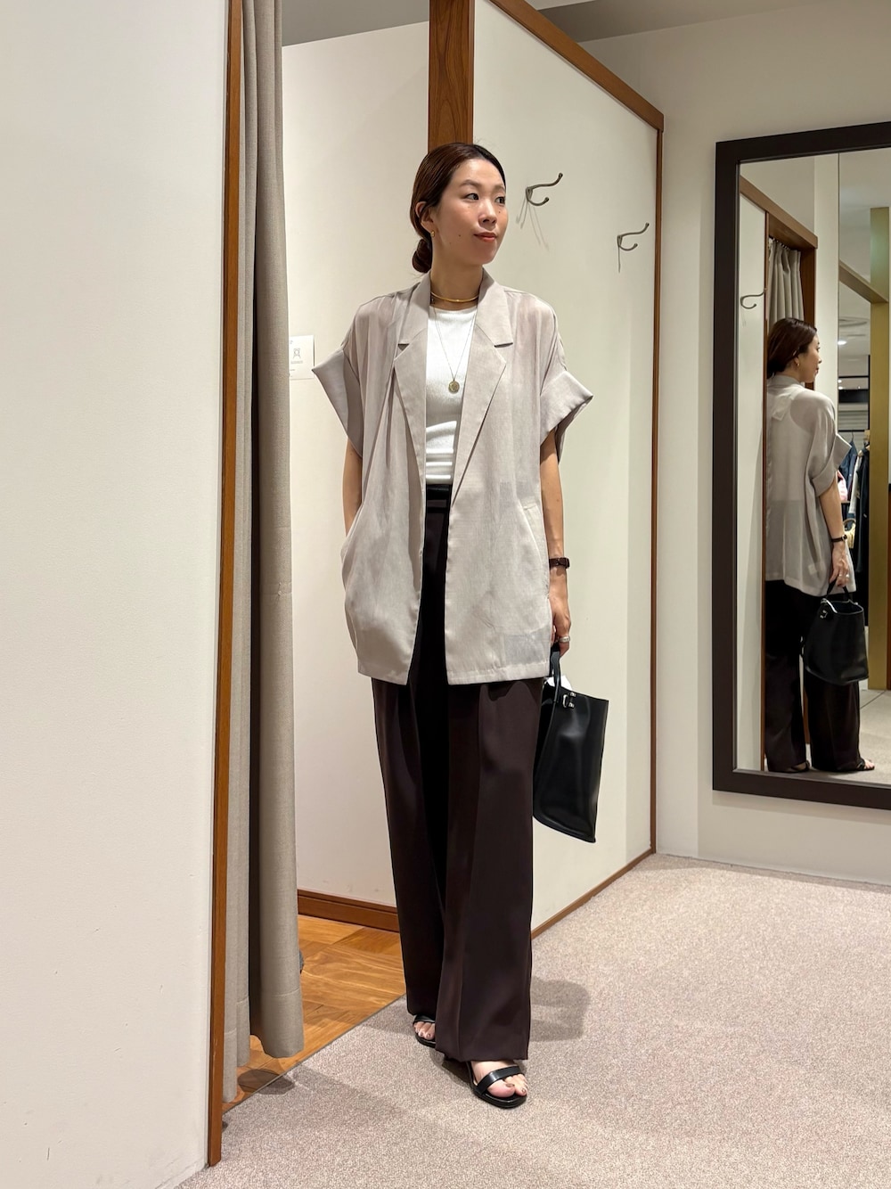 岡本(URBAN RESEARCH なんばCITY)のその他アウター「シアーハーフスリーブジャケット」を使ったコーディネート