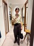 【167cmコメント】 先日の、出勤コーデです! ・ニット 薄手で、かなり涼しいです。 インナーの透け感も気にならないです。 ゆったりしているので、中にシャツを重ね着することも 可能です! ・パンツ サラッとした素材でシワになりにくいです。 ウエストは少し大きいですが ゆるっと履く方が可愛くて38にしました! 何か気になることがあれば下記へ お気軽にお問合せください😊 岡本インスタ @ai_okmt14 URなんばCITY店 050-2017-9044