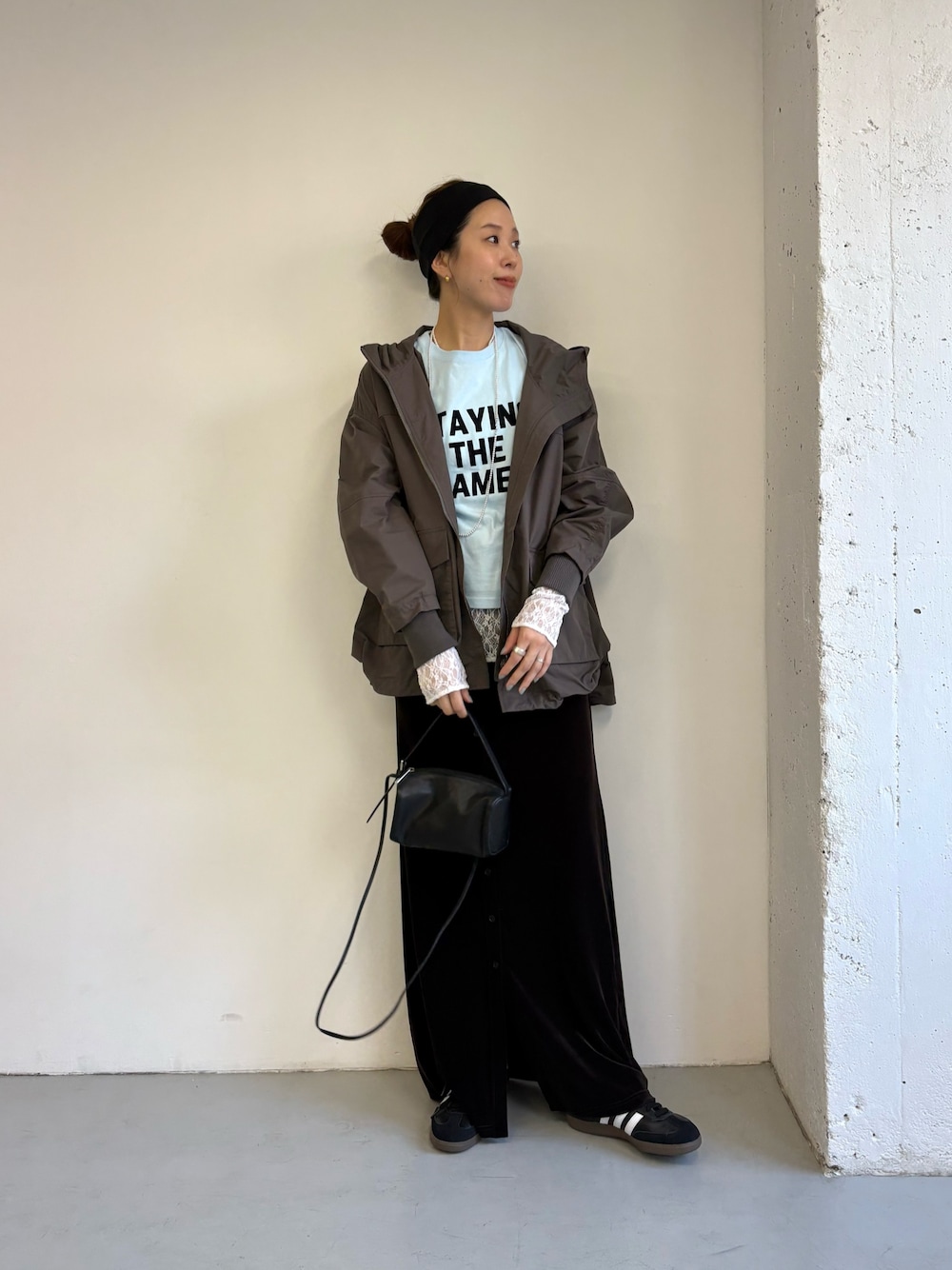 【167cmコメント】 スカートは、もう少し後に入荷する ベロアのワンピースを腰巻きしています。 また入荷しましたら、商品の紐付け致します! ・Tシャツ Sサイズだと、女性ならピッタリで 薄手のものならギリギリ重ね着可能です。 ロゴの配色が大人可愛くて、 私もどの色にしようか迷っています、、! ・アウター フリーですが、全体的にゆとりがあり 大きめです。 裾はギュッと絞るのが スッキリ見えておすすめですよ! 軽くてそこまでシャカシャカした素材ではないため カジュアルすぎずに着れます◯ 何か気になることがあれば下記へ お気軽にお問合せください😊 岡本インスタ @ai_okmt14 URなんばCITY店 050-2017-9044