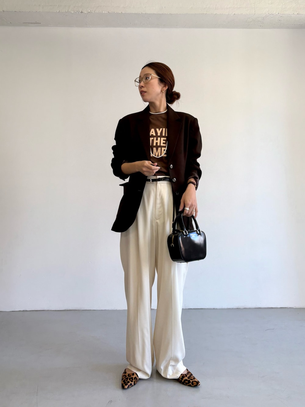【167cmコメント】 ・ジャケット アウター代わりとなりそうなほど、 しっかりとしたウール素材ですが 軽いです! サイズはフリーですがゆとりもあり 長袖でも腕周りは余裕もって着れそうです。 ・Tシャツ Sサイズだと、コンパクトでスッキリ着れます。 生地はてろてろすぎず 程よくしっかりしているため 洗濯でもヨレる心配無さそうな素材です。 何か気になることがあれば下記へ お気軽にお問合せください😊 岡本インスタ @ai_okmt14 URなんばCITY店 050-2017-9044