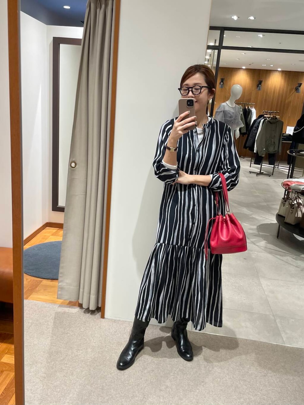 岡本(URBAN RESEARCH なんばCITY)のワンピース「ランダムストライプワンピース」を使ったコーディネート