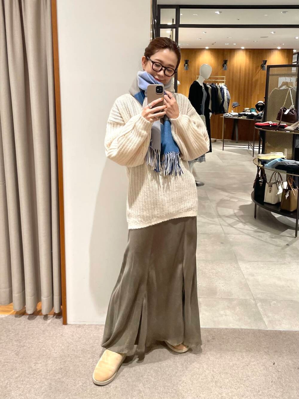 身長:167cm 普段サイズ:34〜36(XS〜S) 年齢:30代後半/イエベオータム 【167cmコメント】 ・ニット ふわふわの素材で、シルエットはゆったりとしています。 (特に袖のボリューム感が可愛いです!) 中に黒いインナーを着ていますが、 めちゃくちゃ透ける感じはなかったです◎ ・マフラー ウール100%ですが、首に巻いても チクチクする感じはなかったです! また生地は程よく厚さはありますが、 分厚くはないため、アレンジして巻きやすかったです。 \ instagram / 【ai_okmt14】 \ WEAR/ 【ai167】 ぜひフォローお待ちしております☺︎ 気になることがございましたら お気軽にお問い合わせください♪ --------*----------*---------- 気になる商品がございましたら店舗通販や、 とりおけーる(店舗での取り置きサービス)も 承っております! 商品のお問い合わせやご不明な点などあれば、 いつでもご連絡下さいませ! 〒542-0076 大阪府大阪市中央区難波5-1-60 なんばCITY 本館B1F TEL:050-2017-9044 営業時間:11:00〜21:00 定休日:不定休 URなんばCITY店では LINEにて商品に関するお問い合わせなど受付ております。 URBAN RESEARCH公式インスタグラムから簡単に お友達登録して頂けますよ! ぜひお気軽に、まずはお友達登録してみてくださいね! --------*----------*----------