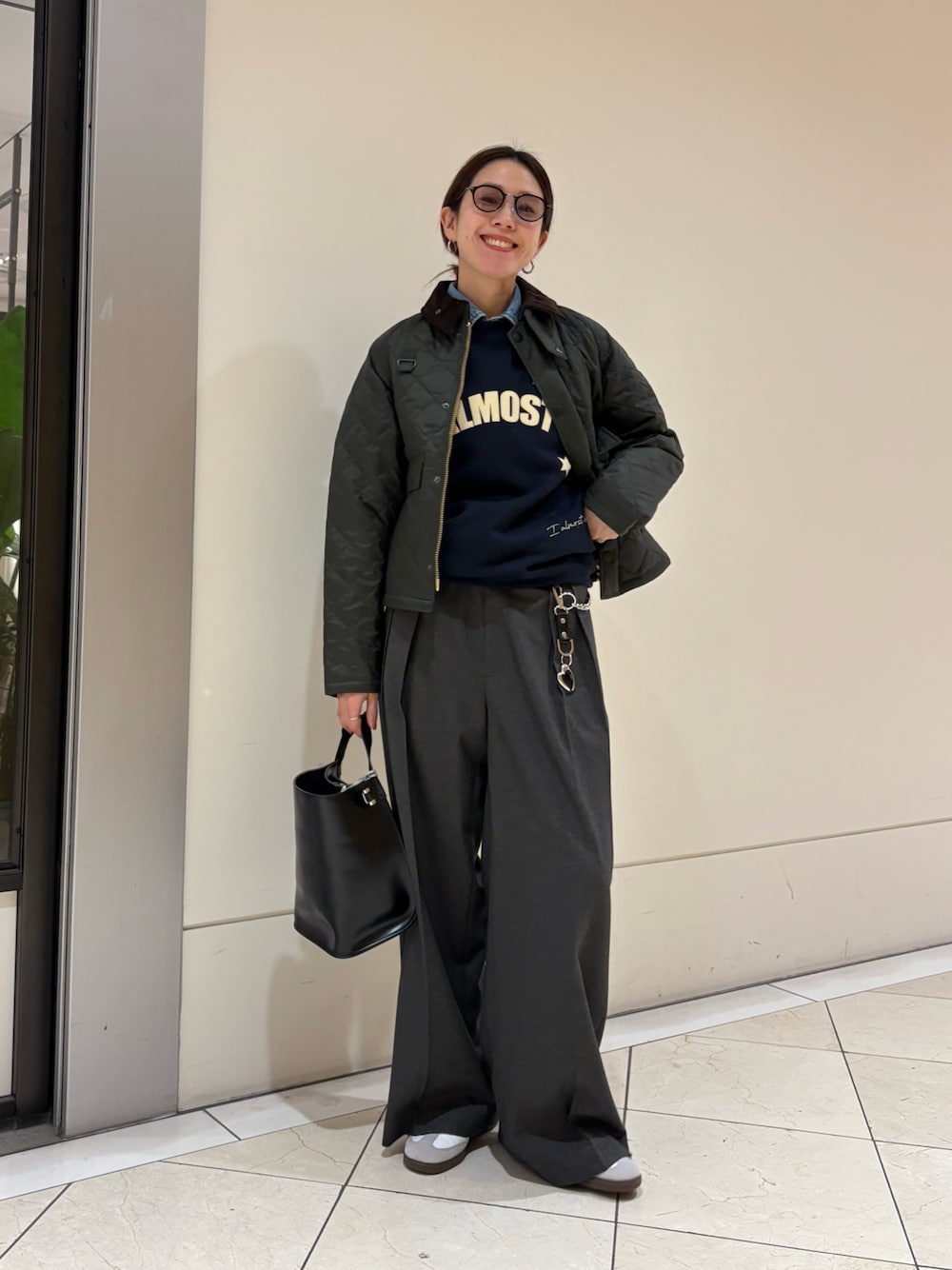 【167cmコメント】 ・バブアー キルティングだと軽くてシワも気にならないので 気軽に着やすいですよね! サイズ感はスウェットの上でも 窮屈感はなく、ぴったりでした! ・パンツ 普段は38ですが、カジュアルにずるっと着たかったので ベルトをして40で履いています。 サラサラした素材で シワにもなりにくそうです。 ウール素材で暖かいですよ◯ 何か気になることがあれば下記へ お気軽にお問合せください😊 岡本インスタ @ai_okmt14 URなんばCITY店 050-2017-9044