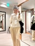 【167cmコメント】 ・ジャケット 本革ですが、そこまで重さはなく 素材も柔らかいです。 ゆったりとしているので、 ニットを中に着ていても腕周りもラクに着れます。 ・ニット 素肌の上に着ていますが、 チクチク感なく着心地も良いです。 ・パンツ ウエストのゴムは伸びるので、 窮屈感なく履きやすいです。 サラッとした素材でシワにもなりにくそうです。 私の体型だと38でちょうどよかったです。 何か気になることがあれば下記へ お気軽にお問合せください😊 岡本インスタ @ai_okmt14 URなんばCITY店 050-2017-9044