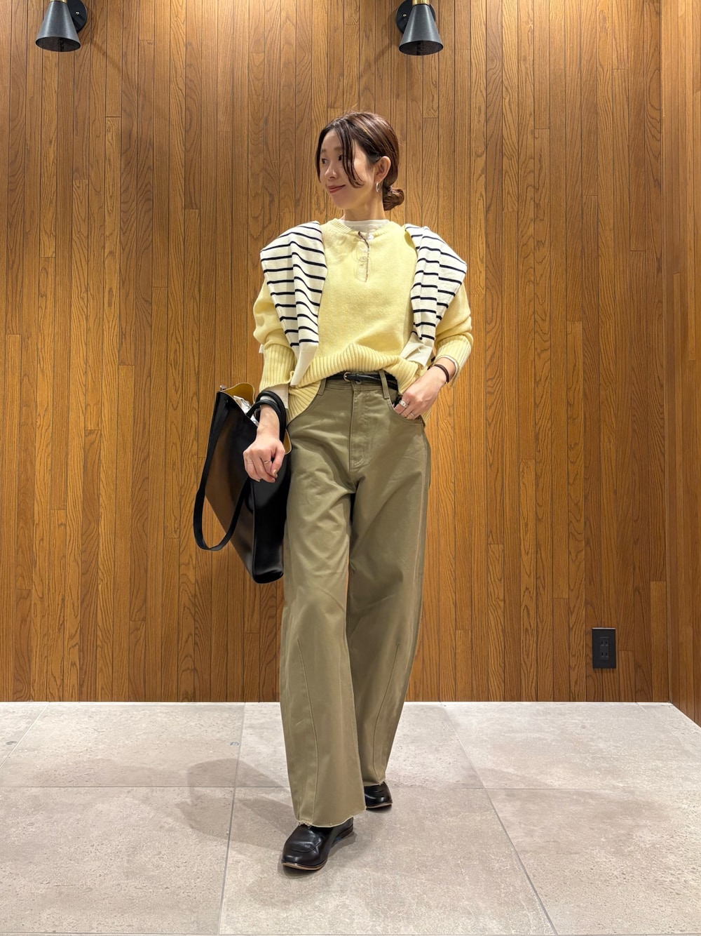 【167cmコメント】 ・ニット 柔らかい素材でチクチクしないです。 洗える所もポイントです! 丈は短いので、インしなくてもスッキリ見えます! ・パンツ 生地は薄手のチノパンなので、 オールシーズン着用できそうです! 私は38のサイズでぴったりでした。 何か気になることがあれば下記へ お気軽にお問合せください😊 岡本インスタ @ai_okmt14 URなんばCITY店 050-2017-9044