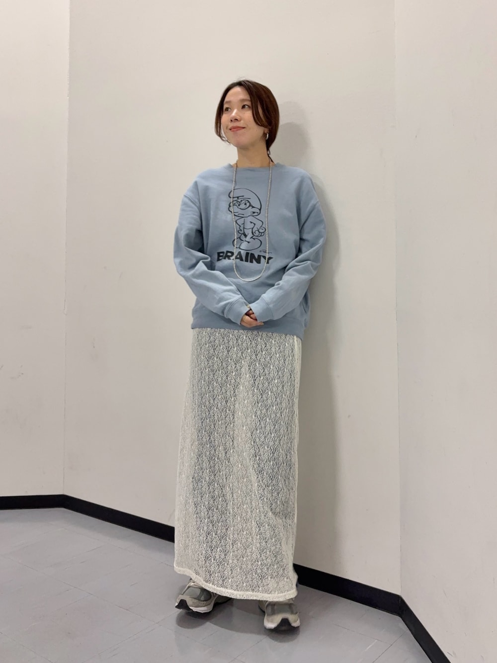 【167cmコメント】 ・スウェット 私はURのオンラインで購入しました! 生地は柔らかくて着やすいです。 サイズはLなので、ゆったりしています。 ・スカート ウエストのゴムは伸びてラクです。 着丈はしっかり長めです。 取り外し可能なペチコート付きで、 私はペチコート無しでデニムで合わせました! 重ね履きしてもピタッとせず ゆとりのあるサイズでした。 何か気になることがあれば下記へ お気軽にお問合せください😊 岡本インスタ @ai_okmt14 URなんばCITY店 050-2017-9044