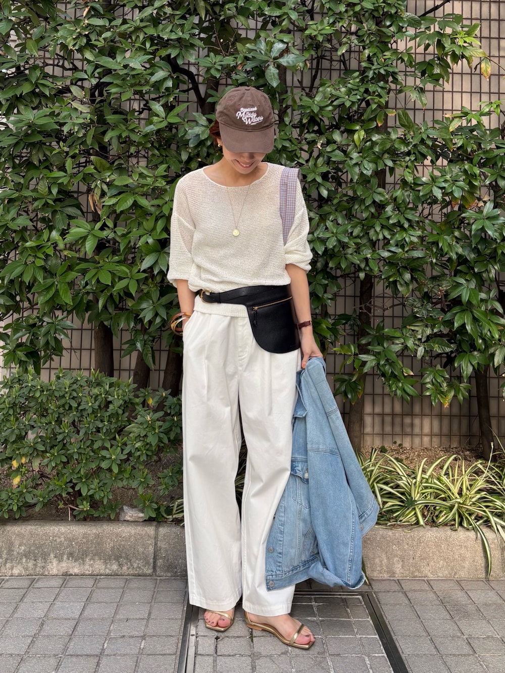 岡本(URBAN RESEARCH なんばCITY)のニット/セーター「ペーパーヤーンボートネックニット」を使ったコーディネート