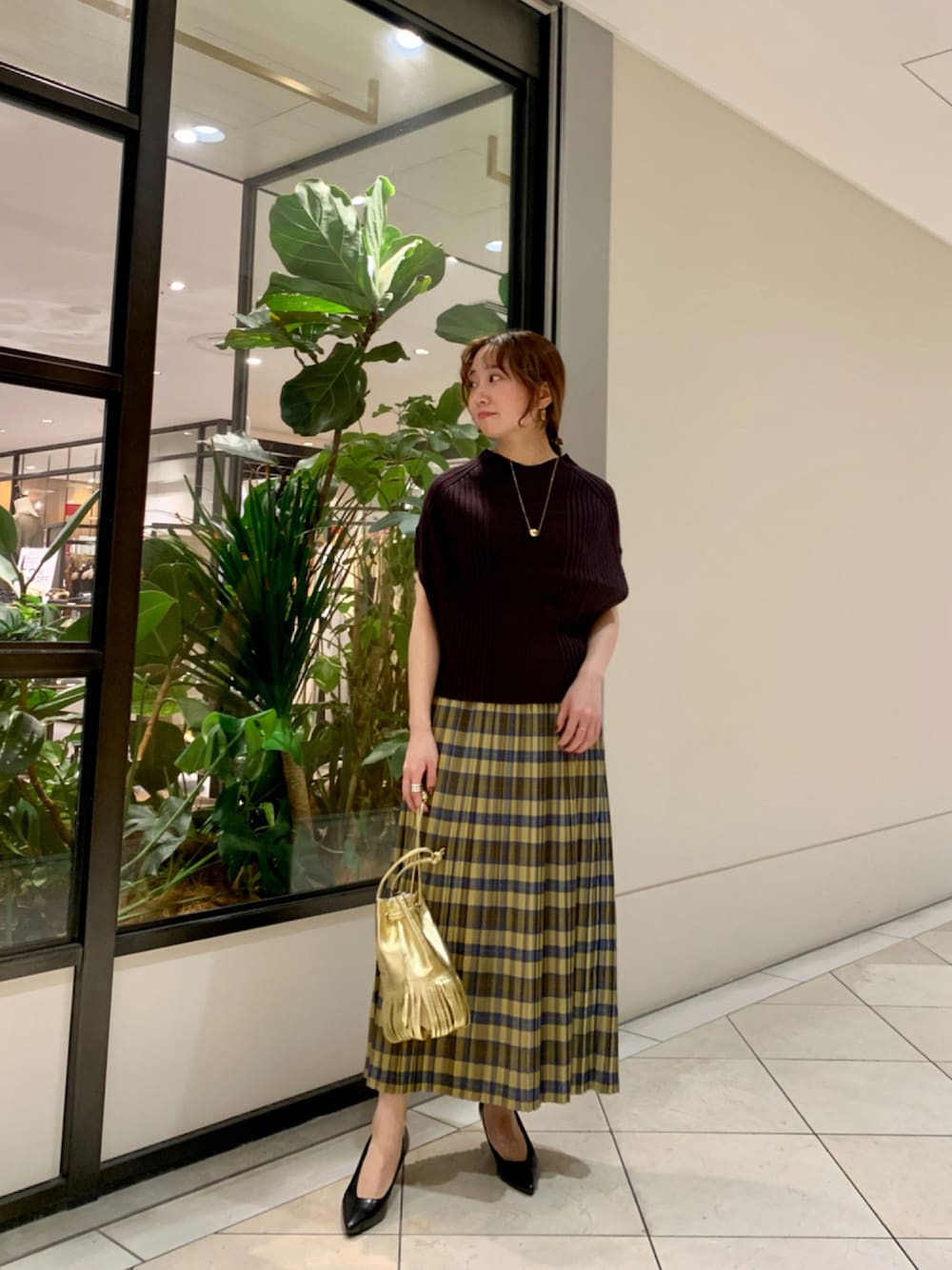 お洒落な配色のチェックスカートは、 細やかなプリーツで甘くなりすぎず コーディネートして頂けます! トーンダウンしがちな秋も華やかになりますね!