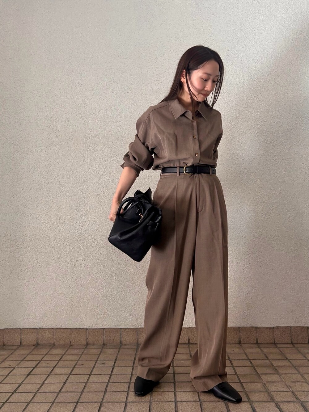 マニッシュな素材とレディなシルエットを掛け合わせた、洗練シャツ。 ウエストにタックが入っているのですっきり女性らしく着れます。セットアップで着るのもとてもおすすめ。