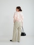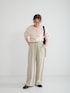 ・ニット 綿カシミヤの軽やかな生地で着心地抜群です。 程よく厚みもあり、季節長く着れます。 ショート丈でワイドパンツやスカートと相性◎ 裾にリブが付いているので、ボトムにインしなくても腰で止まります。スタイリングしやすく着回しも良いです。淡いカラーなので挑戦しやすいピンクです。