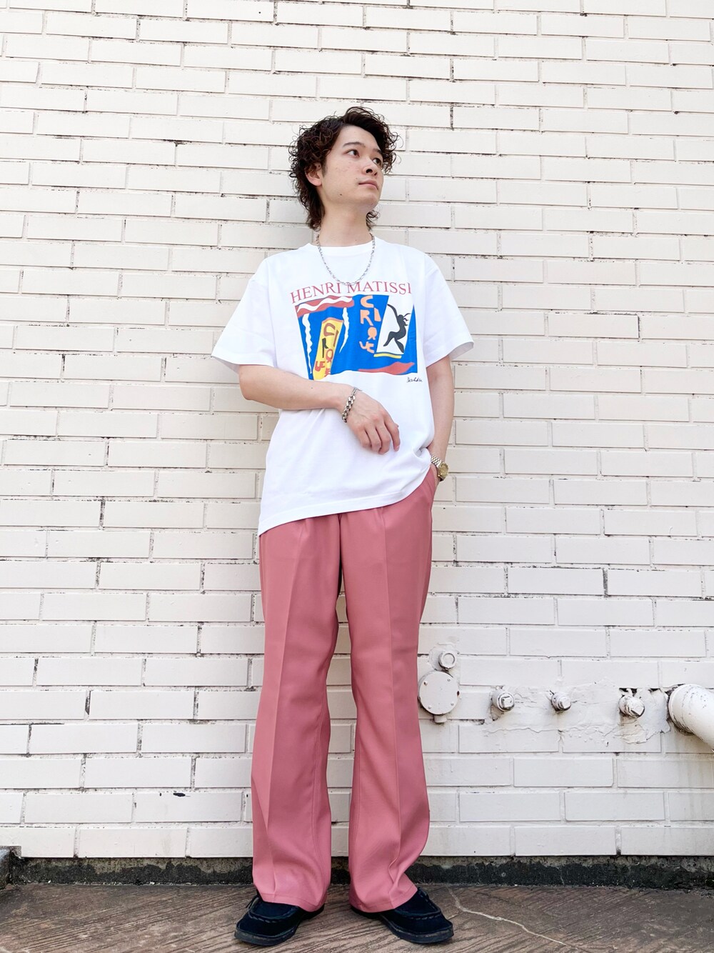 こんにちは!いつもコーデを拝見して下さり、ありがとうございます! 今回は、シンプルなコーデながら、プリントTeeに絶妙なカラーのワイドスラックスを合わせました! トップスはアートプリントTeeです。インナーに使っても良いですし、夏は1枚でキマる便利アイテムです!今年はいろんなプリントTeeが出ているので、見比べて好きなアイテムを見つけてみて下さい! パンツはURiDとラングラーのコラボスラックスです。素材が通年履きやすい素材なので便利なアイテムです!ワイドパンツが苦手な方にもチャレンジしてみてほしいアイテムになっています!