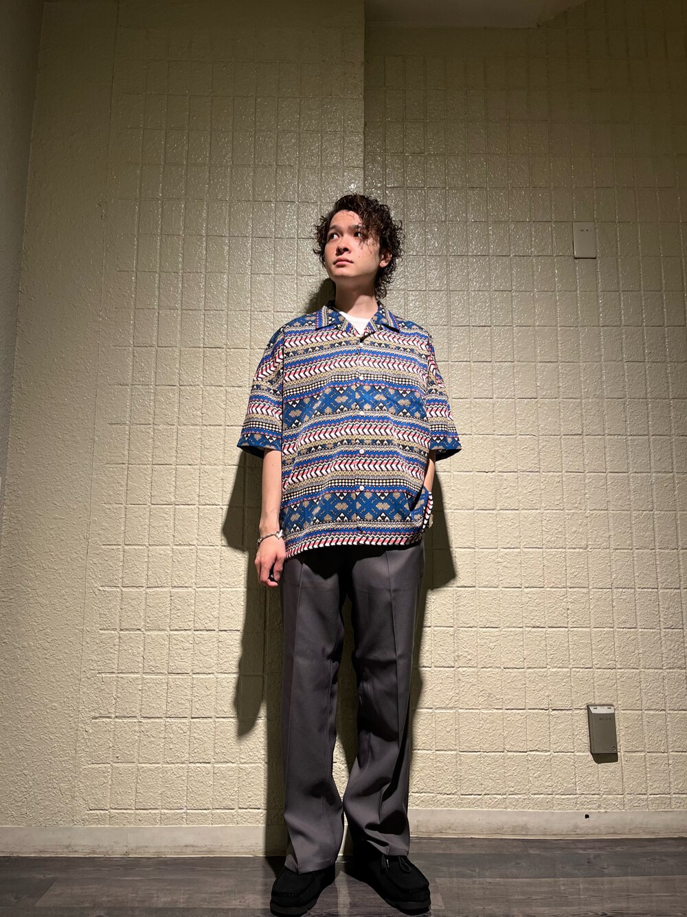 こんにちは!いつもコーデを拝見して下さり、ありがとうございます! 今回はURiDの新作の柄シャツと、ラングラーコラボのパンツを合わせた夏コーデです! 今回の柄シャツはブルーを主体に様々なカラー、柄が入っている存在感のあるアイテムになっています! 2色展開ですが、どちらがお好きか是非見てみて下さい! パンツはシンプルにグレーのスラックスにしました!白シャツなどのシンプルなアイテムでも良いですが、夏らしさ出すには色物、柄物と合わせて見てください! パンツも多色展開なので是非チェックして下さい!