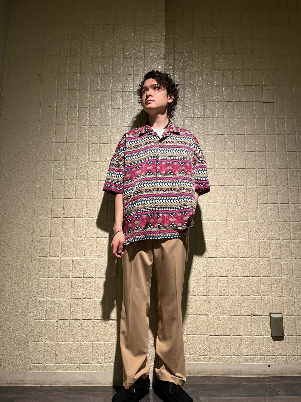 こんにちは!いつもコーデを拝見して下さり、ありがとうございます! 今回はURiDの新作、柄シャツとスラックスを合わせたコーデです! 今回の柄シャツはレッドを主体に様々な柄、カラーが使われています!存在感抜群です! 暖色に纏めるためにベージュのスラックスに合わせてみましたー! チノパン、デニム、スラックス、どんなパンツにもあうシルエットになっていると思います! 是非お試し下さい!
