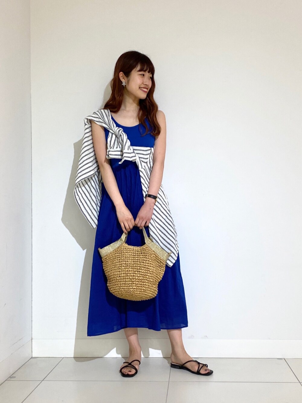 KBFの大人気アイテム、ギャザータンクマキシワンピースが今年もカラーバリエーションを変えて登場しました! ストライプのシャツを羽織っても斜めに巻いても可愛いですよ♩