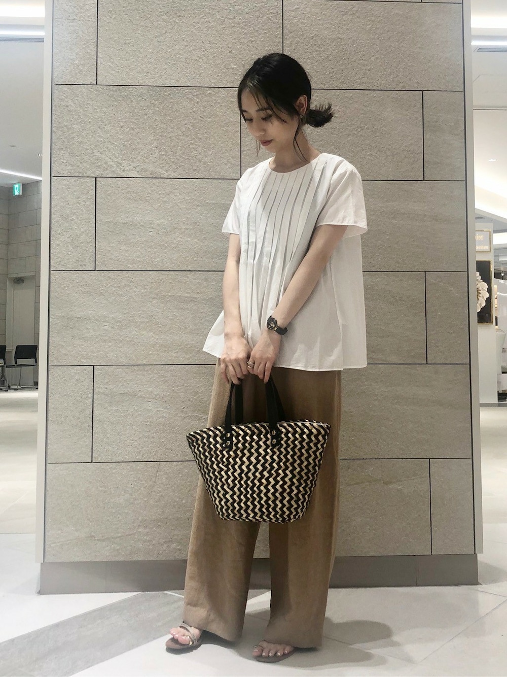 定番の白×ベージュはいつ着ても可愛い組み合わせです( ˊᵕˋ ) ゆるっとワイドなパンツなので、 カジュアルに着たい方におすすめです!