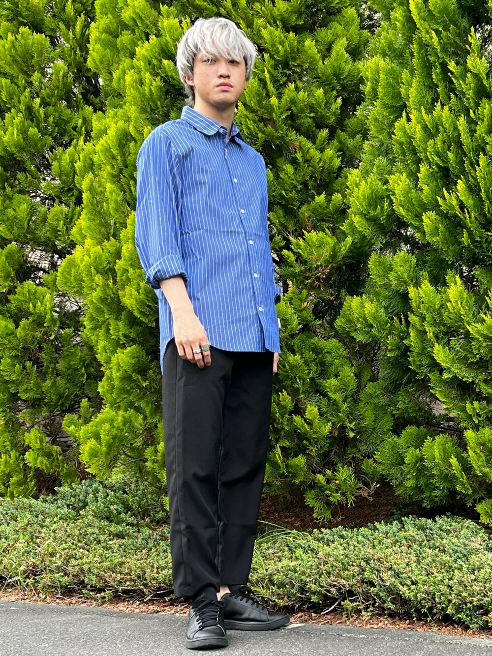 ストライプのシャツは使い勝手が良く、1枚でも羽織でも着られる万能アイテム🙆♂️