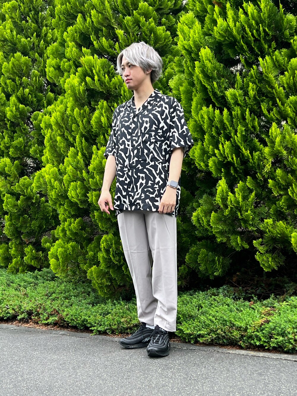 Toru (warehouse 那須ガーデンアウトレット)のシャツ/ブラウス「ジオメトリックプリントOPカラー半袖シャツ」を使ったコーディネート
