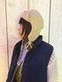 kaorinomori フライトキャップ風ニットガイド🌟 取り入れるだけで、トレンド感あるコーデに仕上がります。 リボンをほどいて耳当て部分ごと上にあげると、フライトキャップとしてもご使用いただけます!