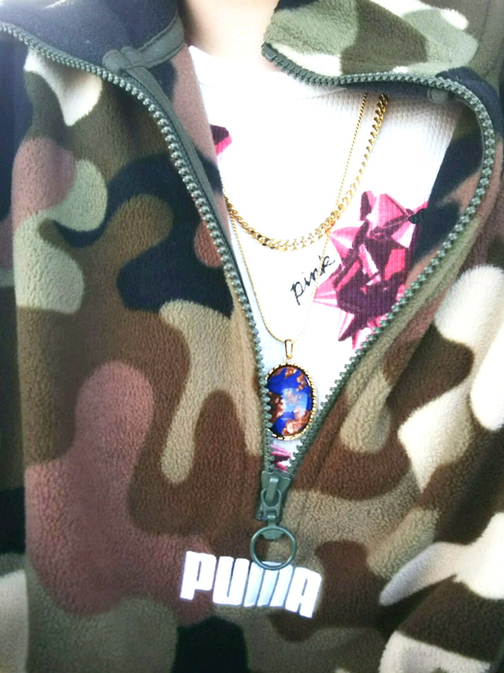 PinkのロンTに プーマのフリースのmen's物をオーバーサイズで着用😊 全身 プーマで揃えたけど 撮ってくれる人おらんかった(´ε`;)ゞ 今回も大阪から他県に移動して一週間滞在の 地元へ帰還中~🌠 良い天気~☀️