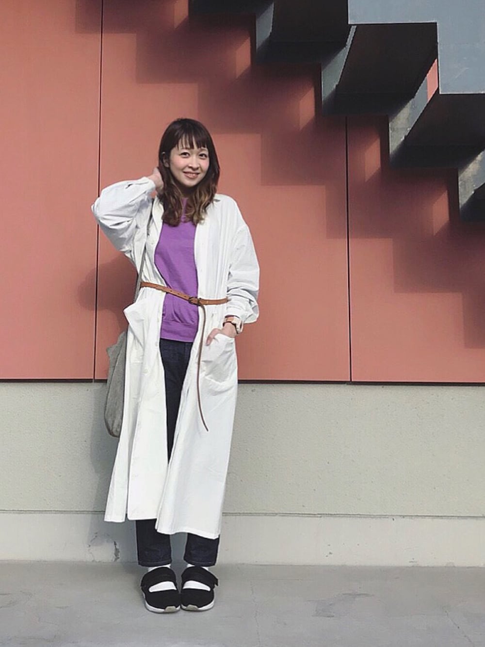階段暮らしのウルカマラのシャツワンピースを使ったコーディネート