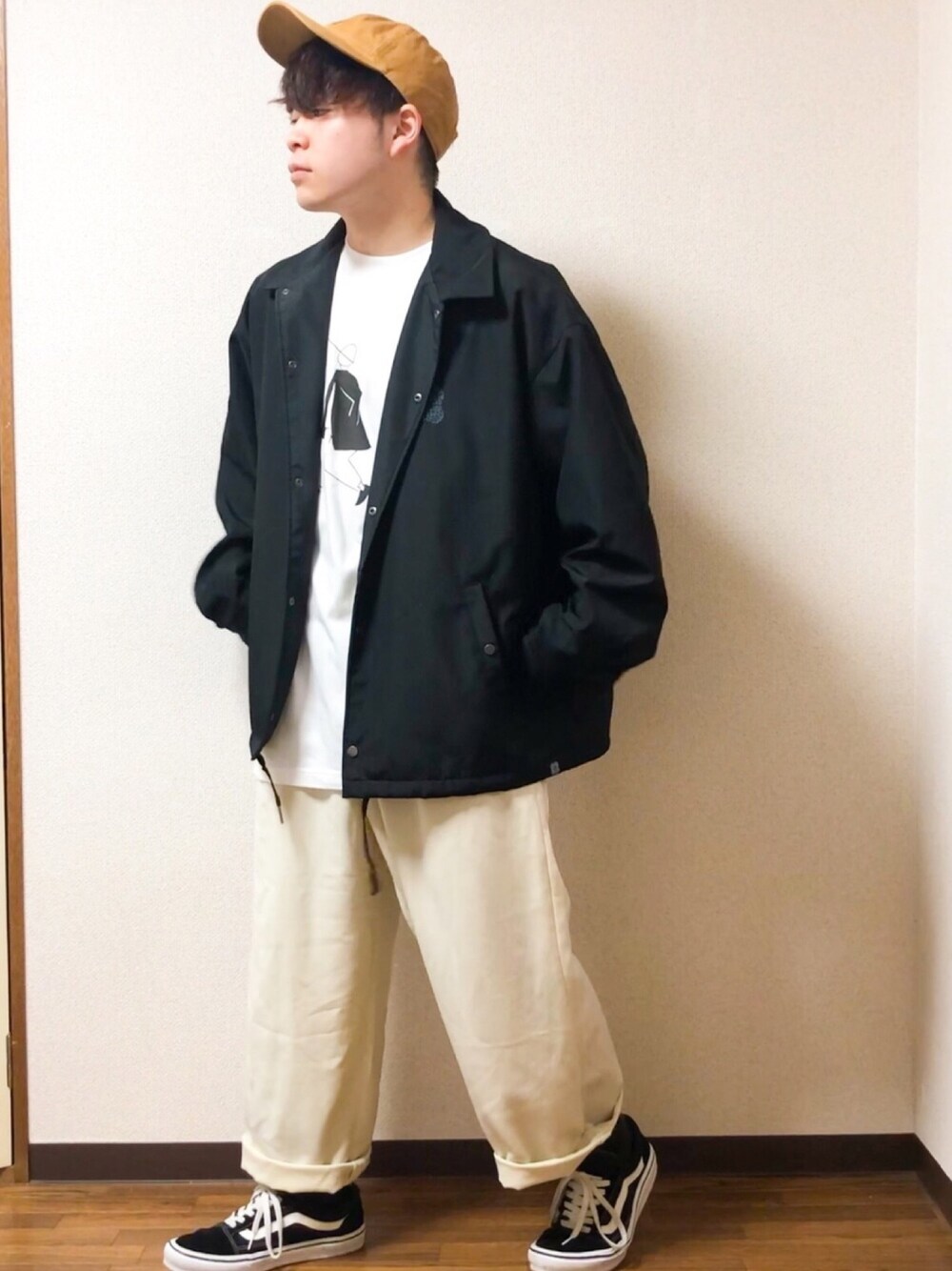 おはこんにちは😃 そらです! echo札幌のイベントで買った ウォークマンシャツのコーデです👔 ウォークマンさん みたいな服装に真似て見ました笑笑 《本日のオススメアイテム》 本日のオススメアイテムはこちら 『MONO-MART TRタックワイドパンツ テーパードスラックス』です🎉 タックが入っていて スタイルが良く見えるのでオススメです! 腰回りなどゆとりがあるので 色々な場面で活躍できると思います! 《コーデのポイント》 ①シャツとコーデが似ている ②ビッグシルエット ③スポーツミックス このコーデがよければ いいね👍お気に入り✨フォロー👪 よろしくお願い致します! 服を通じて 沢山の方とお話がしたいので 是非気軽に話しかけてください! 《アイテム一覧》 🧥… GU ビッグコーチジャケット size / L ⠀⠀⠀着丈⠀/ 74 ⠀⠀⠀肩幅⠀/ 61.5 身幅 / 71 袖丈 / 57 購入時価格 / 4305円 👕 … echo ウォークマンシャツ size / XL 購入時価格 /3240円 👖 … MONO-MART TRタックワイドパンツ テーパードスラックス size / M ⠀⠀⠀ウエスト⠀/ 79 ⠀⠀⠀ヒップ ⠀/ 108 わたり幅 / 35.5 股上 / 40 裾幅 / 26 股下 / 65.5 購入時価格 / 5400円 👟 … VANS オールドスクール size / 26.5 購入時価格 /8100 《 SNS 》 Instagram ↪︎ @_________n.s________ こちらは衣食住をテーマに投稿しています! Twitter ↪︎@skybake7 こちらは、日常です。 《撮影詳細》 photographe ↪︎すがた そら。 OLYMPUS PEN Lite E-PL3 《編集アプリ》 PS Express camera360 以上そらでした👋 2019.1.22