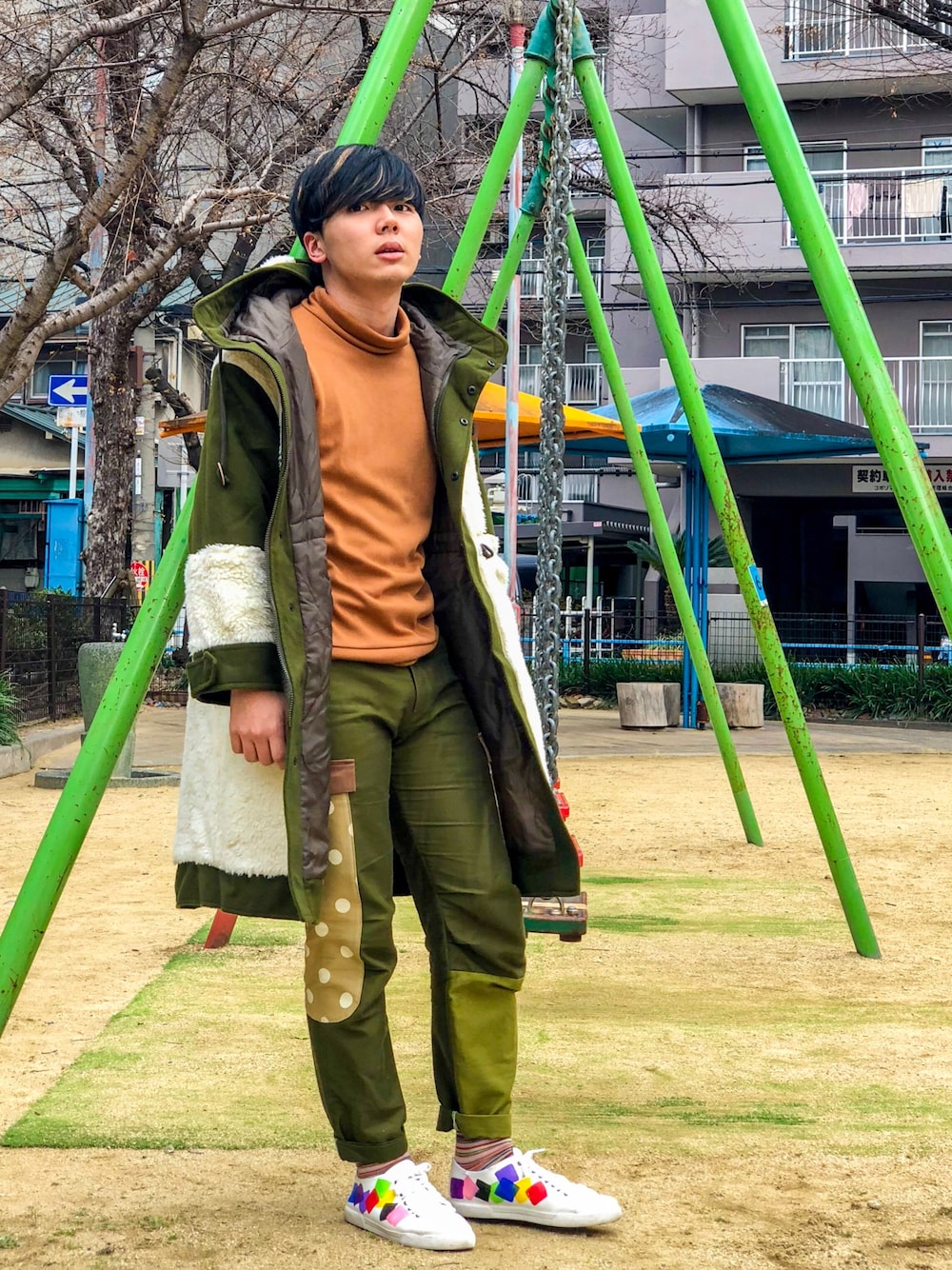 カーキまん。 冬は、 ちょっと油断すると 色を失ってしまうから たまにワントーンで 色を全面に出したくなる。