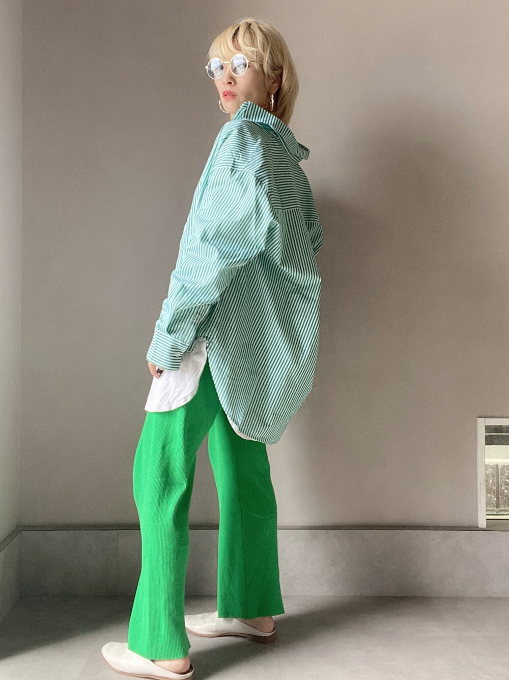 #bohmal_official #bohmal #ボマール #bohmal_style #ストライプオーバーサイズシャツチュニック ZOZOTOWNで1000円OFFクーポンあり🤩 #春コーデ #ストライプシャツ#グリーンコーデ#アラフォーコーデ #ショートへア #ママ#アラフォーママ