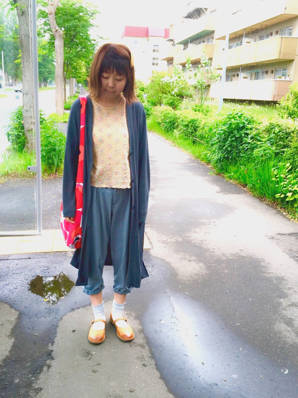 古着のトップスは、水色とピンクの刺繍が可愛いです❁丈も短めでお気に入り。 2ヶ月間いつも着ていたカーディガン、まだまだ着るぞ\(^o^)/