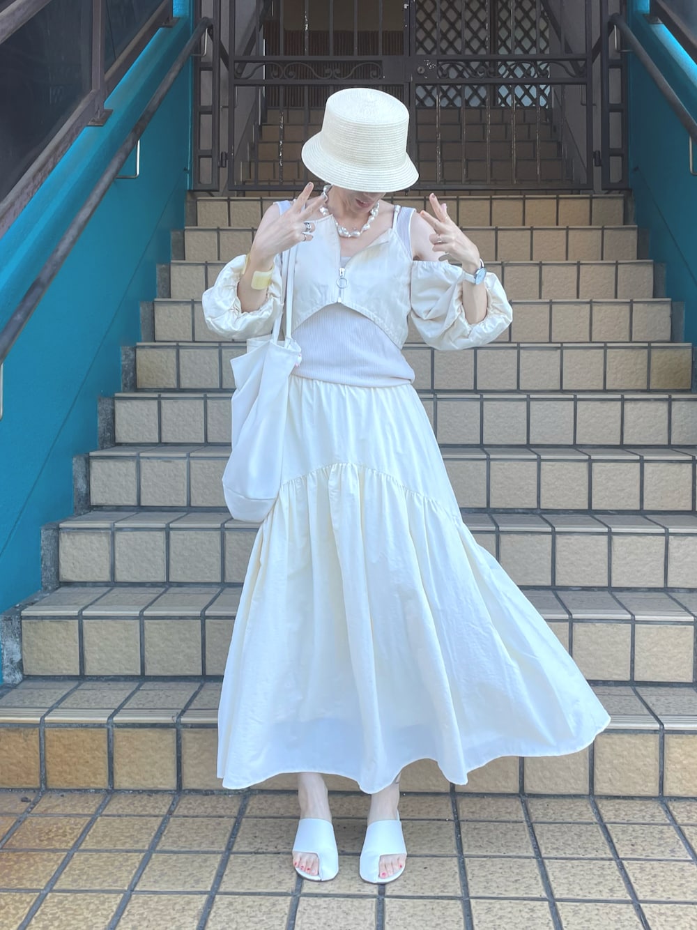 OBASanNOʕ•ᴥ•ʔのハット「ストローバケットハット」を使ったコーディネート