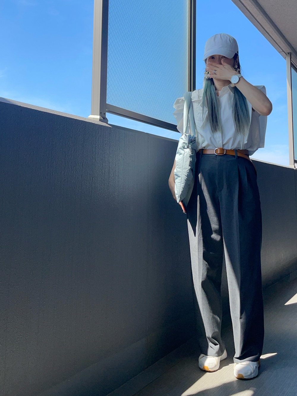 OBASanNOʕ•ᴥ•ʔのシャツ/ブラウス「アシメラッフルデザインノースリシャツブラウス」を使ったコーディネート