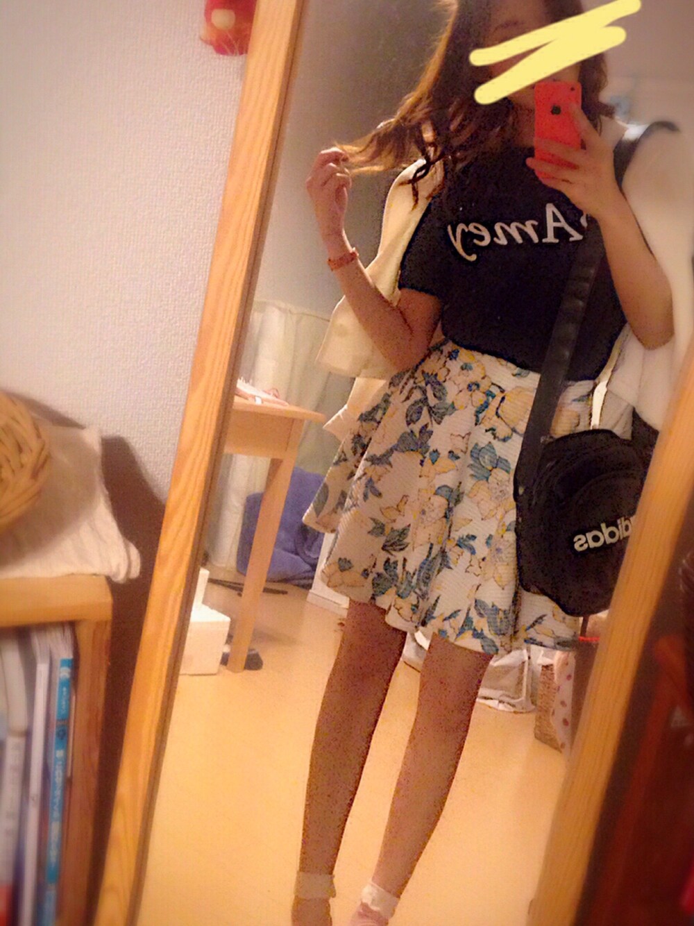 🔻ホワイトジャケ👕 × 花柄スカート👗🙃🌟 イコール、春🌸🌸 みたいな 安直な 脳内が 垣間見えるよーな コーデになりました🌚乙。 綺麗め、綺麗め、に なりがちな 可愛い 🔻Lilidia item👯✨を 無理矢理 Americanaで カジュアルに崩しました🕵🏻🌟