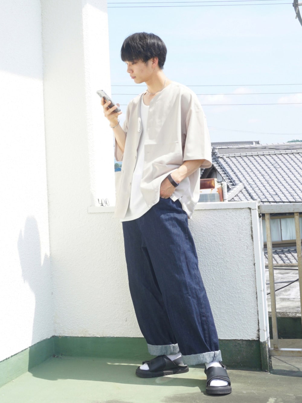 uchiのシャツ/ブラウス「ノーカラーシャツカーディガン」を使ったコーディネート