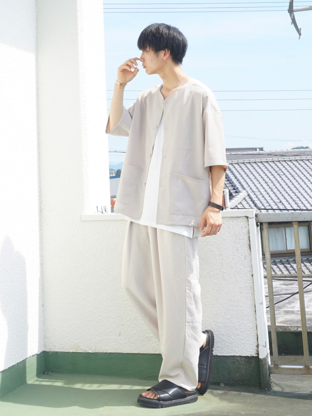 uchiのシャツ/ブラウス「ノーカラーシャツカーディガン」を使ったコーディネート