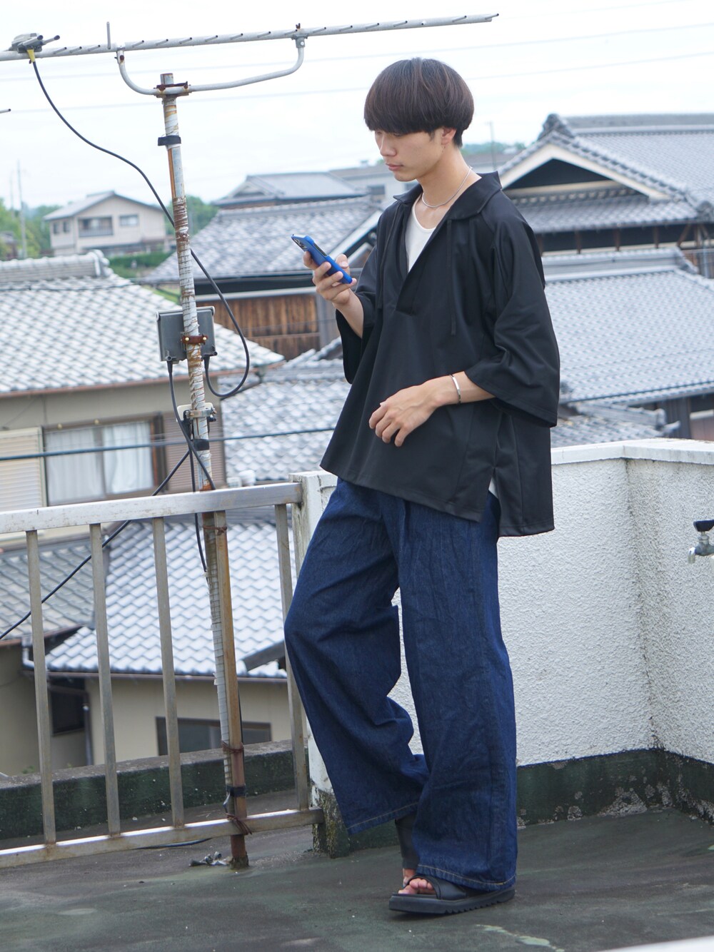uchiのデニムパンツ「デニムワイドフレアパンツSS(HARE)」を使ったコーディネート