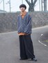 uchiのスラックス「TRストレッチスーツ地 ストレート 1タック センタープレス ワイドパンツ/スラックス」を使ったコーディネート