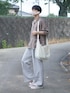 uchiのスラックス「【cussil/クシル】TRストレッチルーズシルエットハイウエストフレアパンツ/デニムパンツ」を使ったコーディネート
