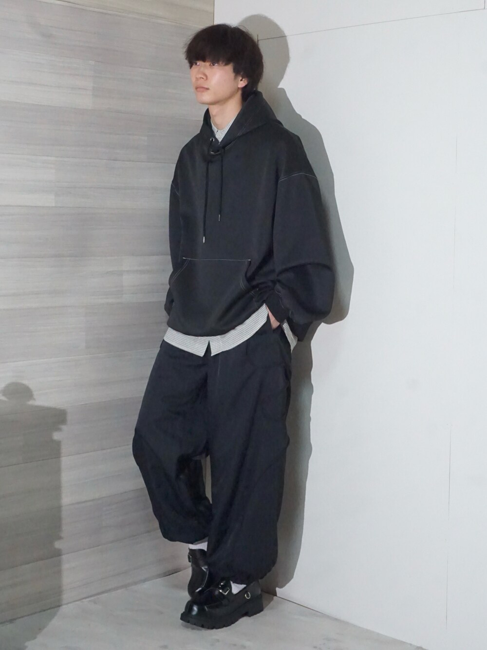 いつも見てくださり、いいね&お気に入りありがとうございます😊 Instagram : wear_uchi_ 春にしたいゆるめなブラックコーデ🐦⬛ パーカーにシャツをレイヤードさせて、おもたくなりすぎないように意識しつつ、チェックシャツなのでカジュアル感もプラス! テック系のパンツで、スポーツミックスなスタイルとなってます! ----------------------------------------- thank you!