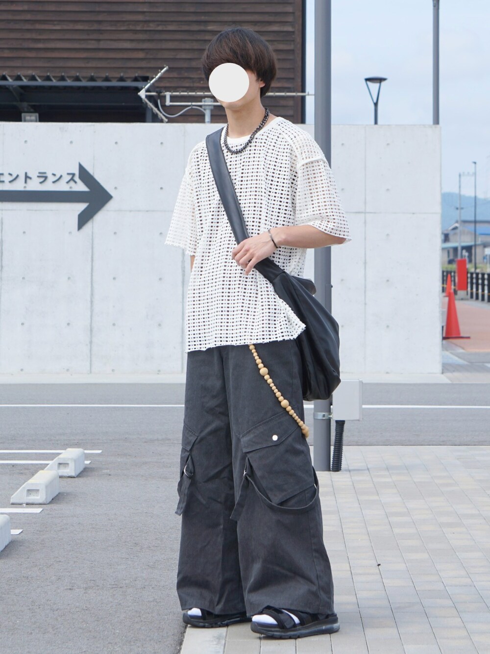 夏でも快適に過ごせるメッシュシャツ! モードっぽい感じに組んでみました◎ レザーのショルダーバッグで雰囲気も出ます!
