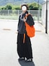 ブラック主体にオレンジで差し色! カジュアルめにラフなスタイリング.